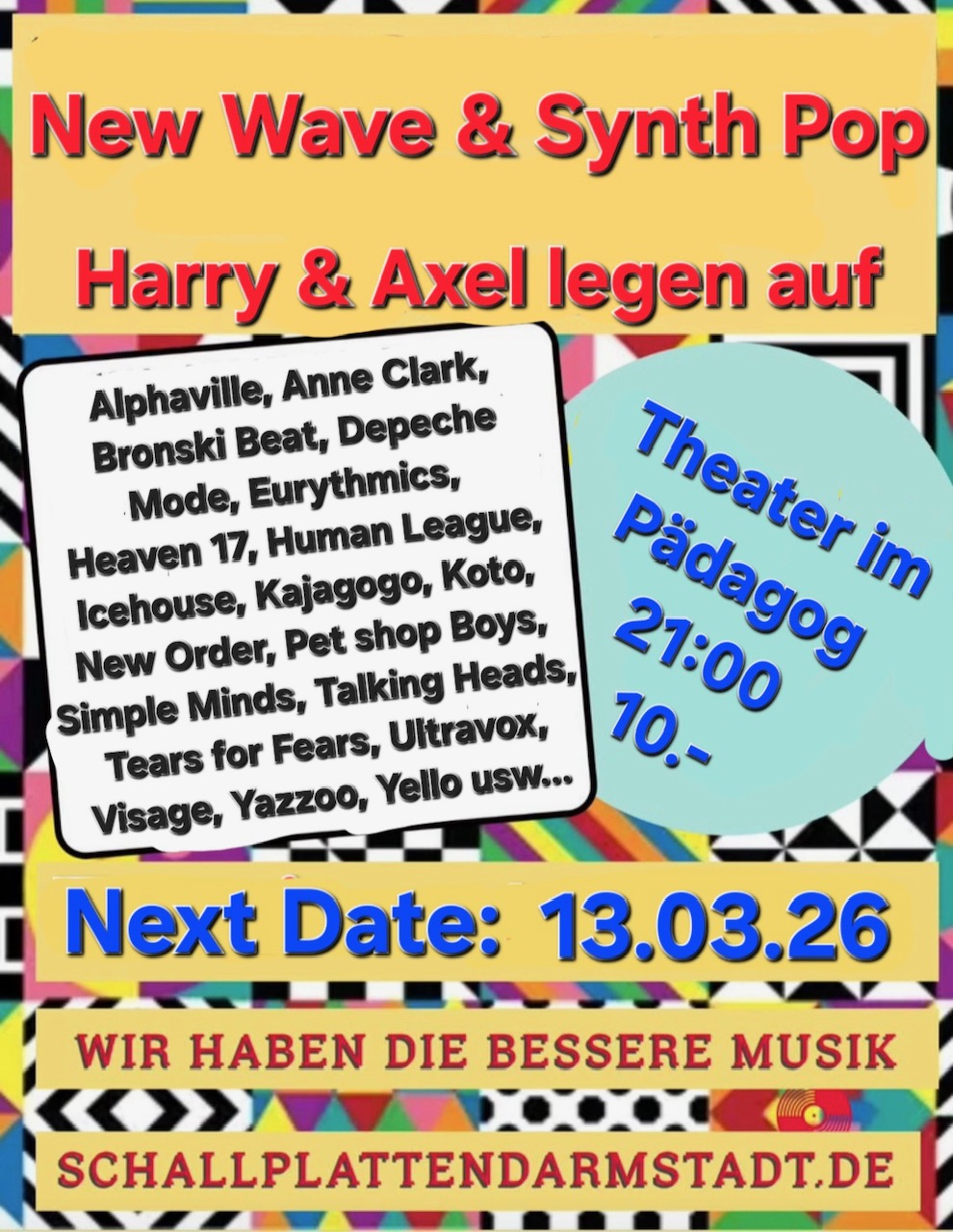 "Mit News im Neuen Jahr, das gab,s noch nie in Darmstadt, ein Abend nur mit New Wave & Synth Pop, das wird schieben..."